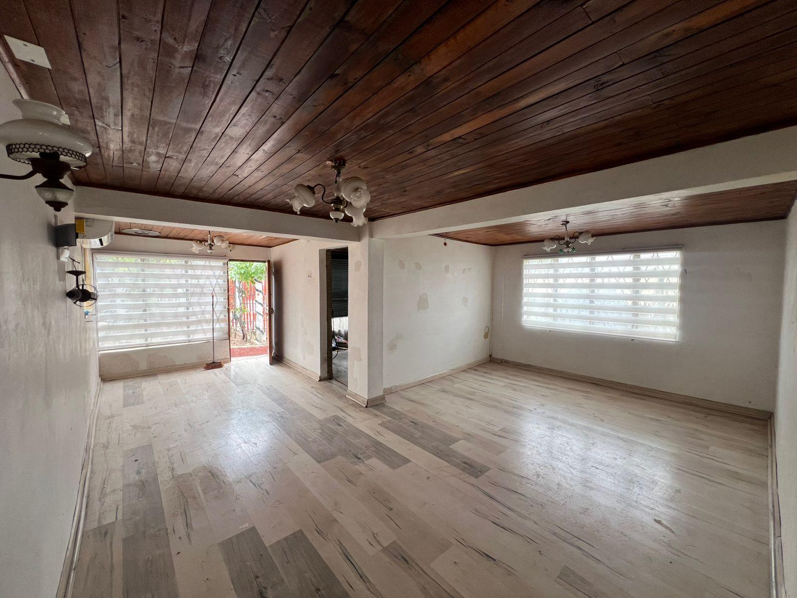 La propiedad cuenta con amplio patio y antejardín. Presenta falta de terminaciones, lo que se puede apreciar en las fotografías, y cocina que requiere restauración completa, ideal para quienes buscan remodelar o invertir.